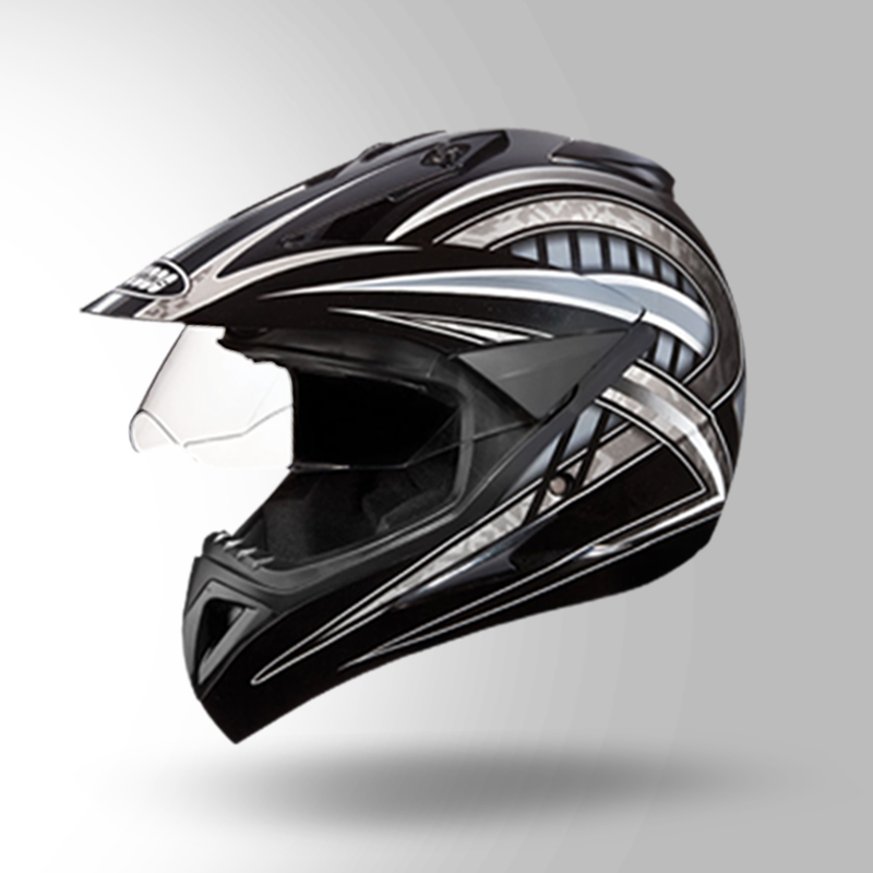 Motocross D2 Decor With Visor is a high impact off-road full-face helmet with visor and other product features like aerodynamic design with regulated density EPS, hypoallergenic and replaceable liner, top and chin air vents and quick release chin strap. Motocross D2 Decor With Visor is available in various sizes, graphics and decal options.
