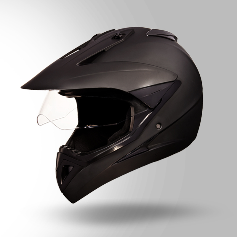 Motocross With Visor is an off-road full-face helmet with quick release visor and other product features like aerodynamic design with high impact outer shell and regulated density EPS, dynamic ventilation system, hypoallergenic and replaceable liner and quick release chin strap. Motocross With Visor comes in various sizes and colour options.