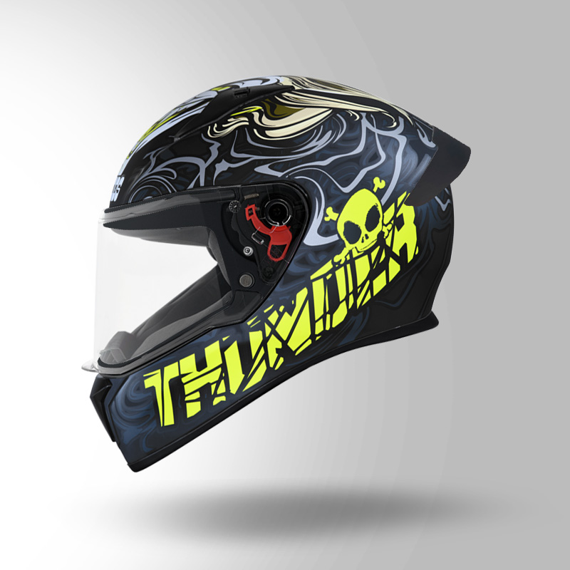 Thunder D5 Decor is one of the most stylish and aggressive helmets from STUDDS. Its aerodynamic design with spoiler gives it a perfect look. Thunder D5 Decor is a full face helmet comes with aerodynamic design, dynamic ventilation system & many more features.