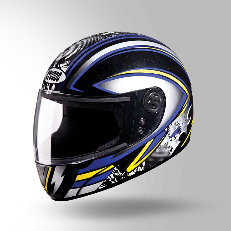 Thunder is one of the most stylish and aggressive helmets from STUDDS. Its aerodynamic design complimented with spoiler and attractive solid colour gives it a perfect look. Thunder is a full face helmet with aerodynamic design , dynamic ventilation system, quick release visor and chin strap.