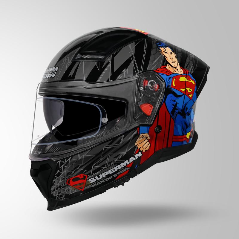 From the streets to the highways, rise above the ordinary with the STUDDS Helios Superman Edition – a tribute to the Man of Steel. Inspired by the unbeatable spirit of Superman, this full-face helmet is designed for those who